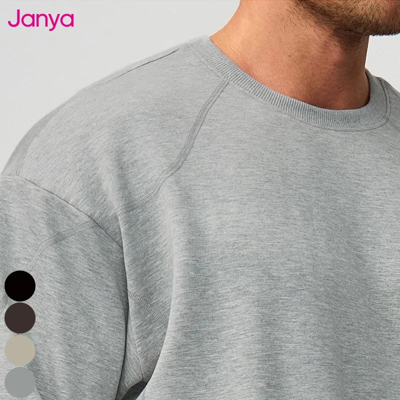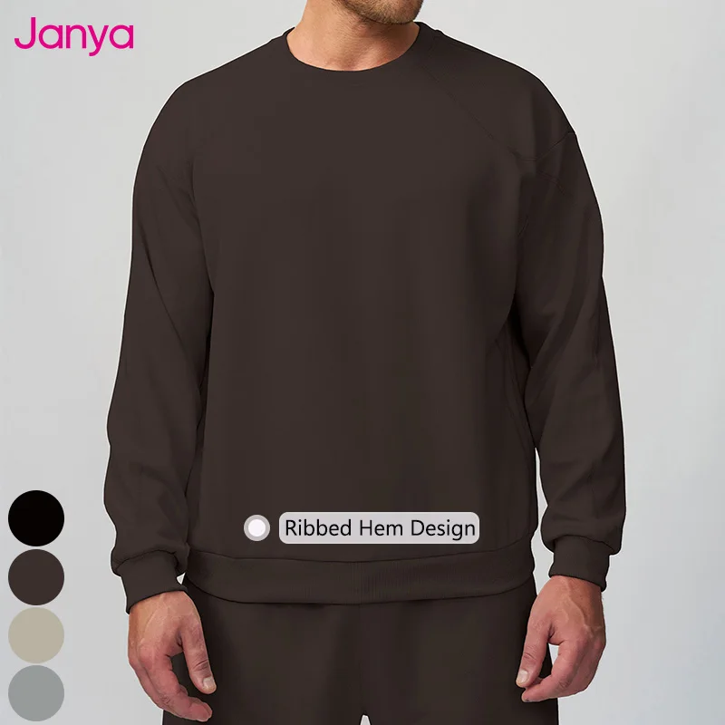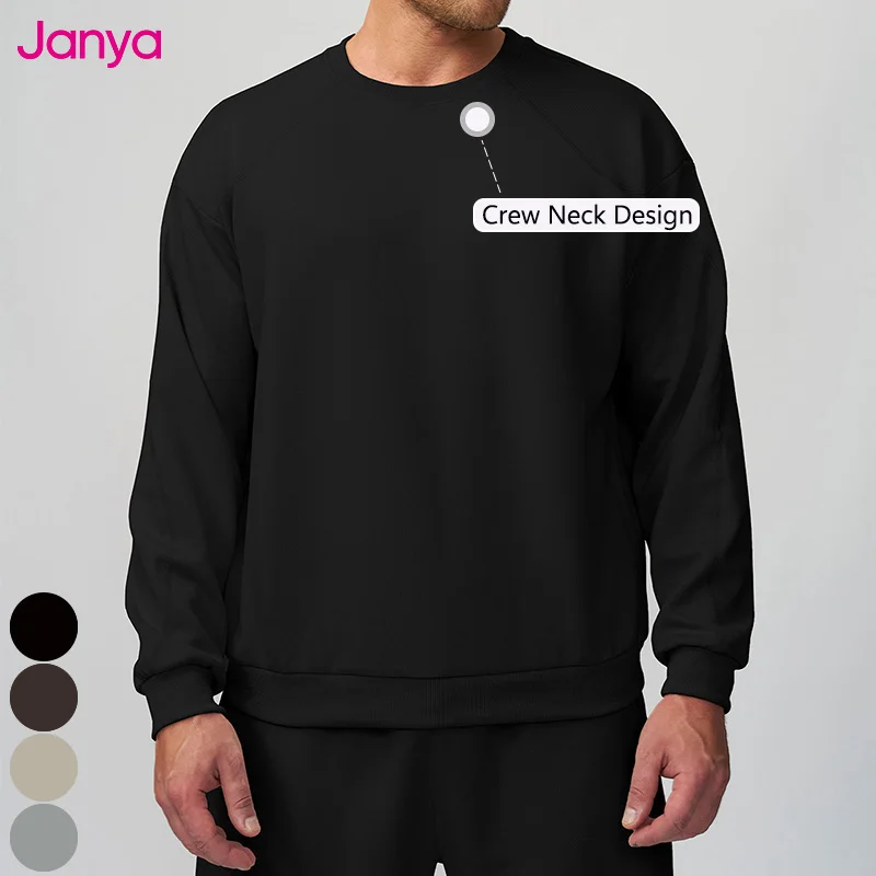 Janya Mens Crew Neck Lightweight Thermal Solid Color Sportswear for Outdoor Running Fitness and Soft Casual Long Sleeve T-shirt